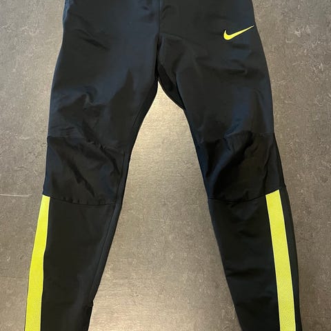 Umbro treningsbukse for fotball, unisex størrelse S. Buksen er svart med kontrastfelt langs siden. Elastisk linning med snøring for justering av passform. Egnet til fotballtrening og annen fysisk aktivitet.