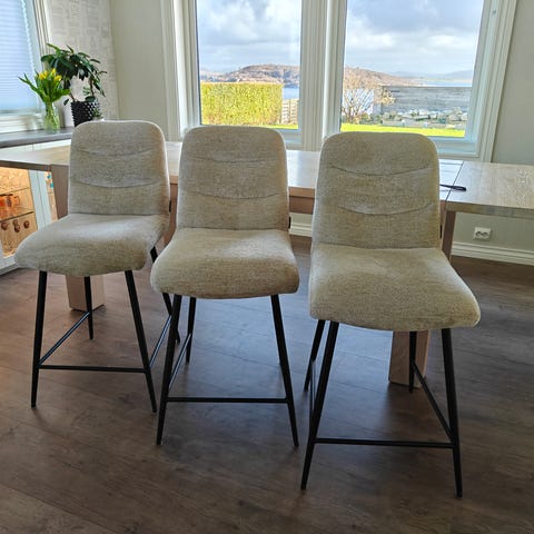 Selger også matchende spisestoler i samme design til 550,- pr stol