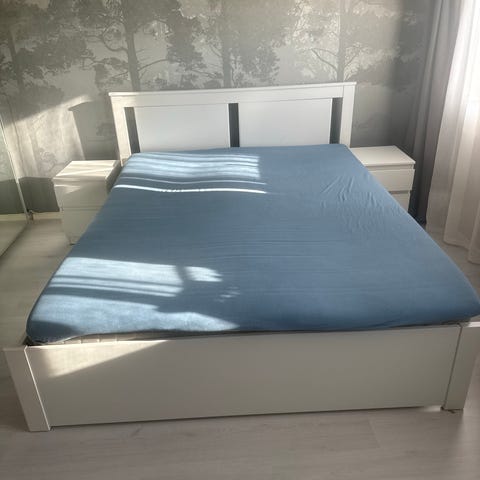 Selger en eldre dobbeltseng, trolig fra 1970-tallet.