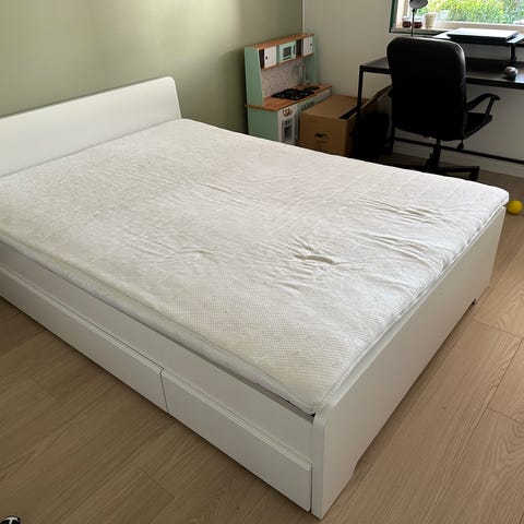 Sengen er i god stand konstruksjonsmessig. Noen bruksmerker.