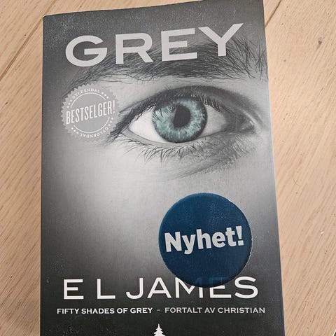 Pakken inneholder tre bøker i Fifty Shades-serien på norsk: