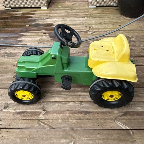 Selger en pent brukt John Deer trampetraktor/trøtraktor.