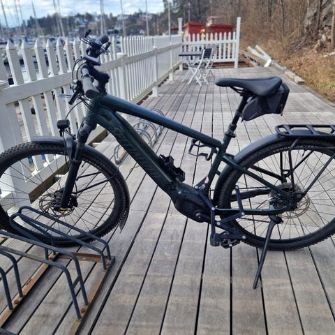 Sykkelen er veldig lett til elsykkel å være og har en motor som hjelper deg avgårde med 240watt på toppen av det som du trør selv. Den har et batteri 320wh som hjelper deg mil etter mil.