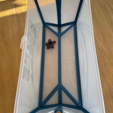 Stokke® Flexi Bath® er et sammenleggbart badekar som passer fra 0-4 år. Det plassbesparende designet gjør det enkelt å lagre og praktisk å bruke hjemme eller på reise. Den smarte proppen gjør at du kan tømme badekaret uten å snu det. Sklisikker bunn. Stokke® Flexi Bath® Newborn Support gir ekstra støtte for nyfødte babyer. Vi i Stokke tilstreber alltid å forbedre produktene våre, og tilbyr derfor nå en varmefølsom propp. Proppen fungerer ved å skifte farge og slik gi foreldre en visuell pekepinn på at vanntemperaturen stiger og må kontrolleres. Vennligst merk at proppen ikke er et termometer. Du må alltid dobbeltsjekke vanntemperaturen med hånden for å forsikre deg om at det holder rett temperatur for barnets komfort og sikkerhet. Hvis du er i tvil, bør du bruke et termometer for å få en nøyaktig måling.