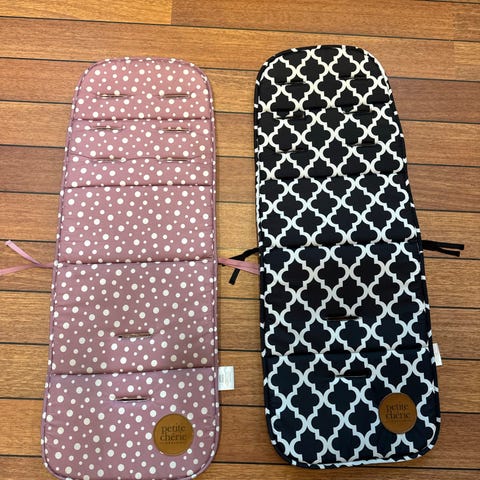 Rosa madrass fra Petite Cherrie med volanger til sportsdelen på en barnevogn eller bare liggende i bunnen på en bagvogn. 5 punkts feste