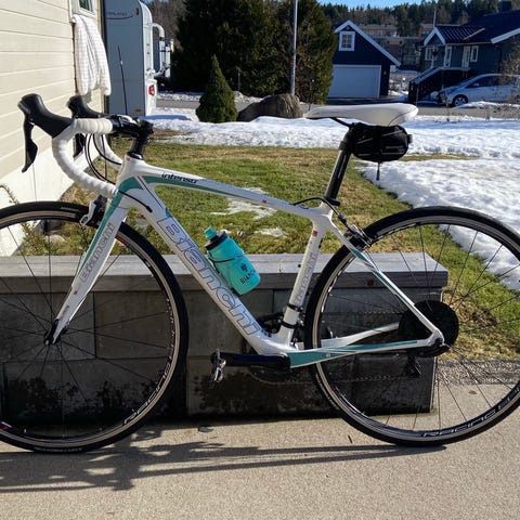 Bianchi Intrepida 105 med rammehøyde 57 cm. Shimano 105 girsett og bremser. Både ramme og gaffel er i karbon. Sykkel som er utrolig god å sykle på. Selges da den dessverre har blitt brukt for lite de siste årene. Styret er senket noe, men lett å justere hvis man foretrekker en noe mer oppreist stilling. Shimano klikkpedaler. Tilnærmet ny styretape.