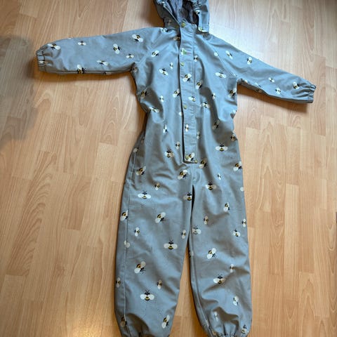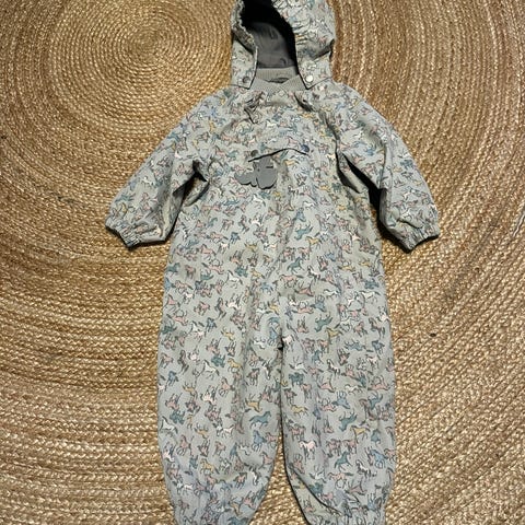 Ubrukt Kuling x Garbo and friends parkdress for barn i størrelse 92. Den har hette, lange ermer og lange ben med strikk nederst og fotstrikk for å holde dressen på plass. Glidelås foran gjør den enkel å ta av og på. Materialet er i polyester, som er lettstelt og praktisk til bruk i barnehage og utelek.