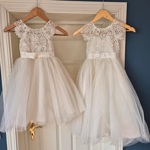 Kjolen ble brukt kun en gang, i konfirmasjon. Ingen merker, ser ut som ny. Strl. XS fargen er blå/grå med glitter.