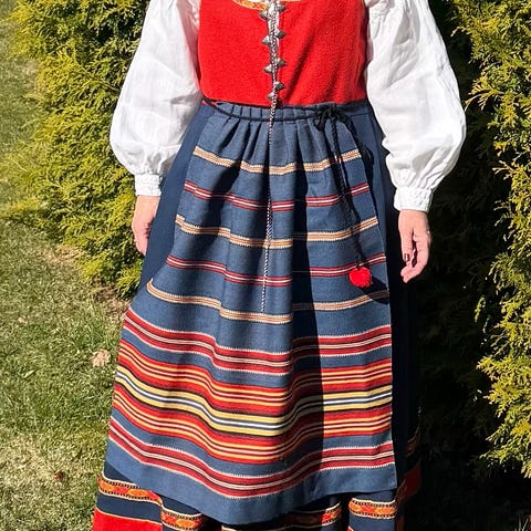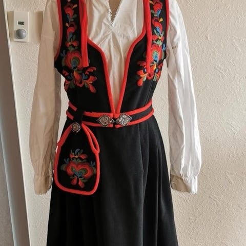 Bunad med jakke og lue. Bunad sølv følger ikkje med. Skjorte ikkje med. Nytt forkled. Gi bud .Ringe for info: 99372142 irene