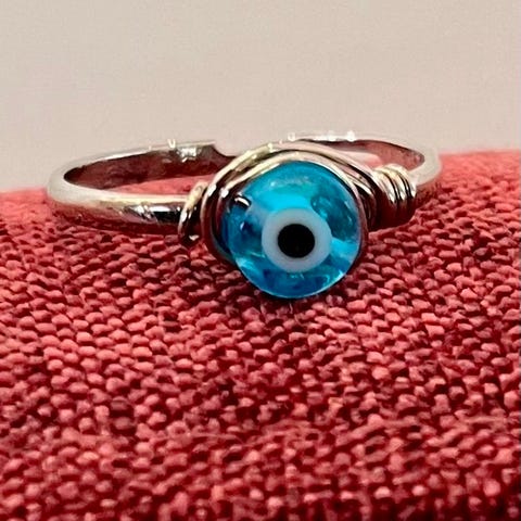 RING SØLVFARGET MED BLÅ STEIN I STR .11 SELGES