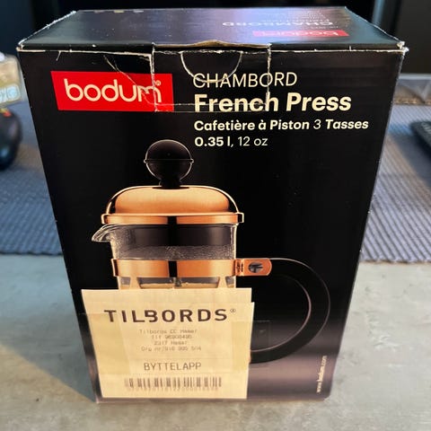 Marginalt brukt Hario Ceramic Coffee Mill Skerton manuell kaffekvern med keramiske malverk. Kvernen har en beholder i glass med avtagbar gummibase for bedre stabilitet under bruk. Øvre del er i plast med metallhåndtak og justerbar innstilling for kverningsgrad. Passer til maling av kaffebønner til ulike bryggemetoder i hjemmet eller på reise.