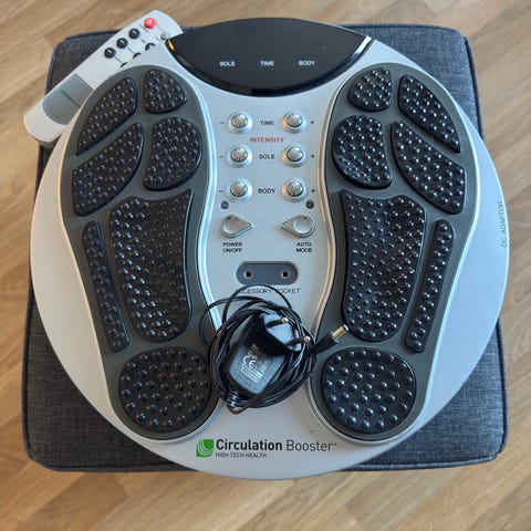 Meget pent og ganske lite brukt sirkulasjonstrener selges. Fremstår som ny. Den kan bidra til å øke blodsirkulasjonen i ben og føtter, redusere hevelser og lindre ubehag. Perfekt for deg som sitter eller står mye, eller ønsker bedre restitusjon etter trening. Helt som ny. God tilstand. Ingen skader. Fungerer som den skal. Inkludert: