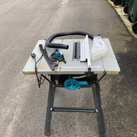 Sigma flissag med stativ. Stasjonær maskin for kapping av fliser, montert på rødt sammenleggbart stativ. Maskinen har rektangulært bord med føringsskinne og vinkelanlegg, samt integrert vannkar under sagbladet for våtkapping. På siden sitter betjeningspanel med av/på-bryter. Egnet for presis kapping av keramiske fliser og lignende materialer i verksted, garasje eller på byggeplass.