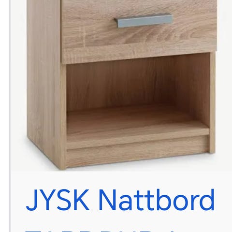 Modellen er kjøpt hos Jysk og heter Ilbro, og har en skuff.