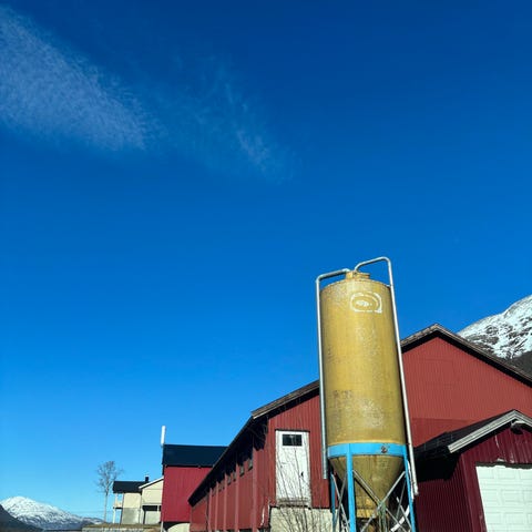 Selger en eldre, men solid kraftfôrsilo i glassfiber fra ca. 1980-tallet. Siloen har vært brukt til lagring av kraftfôr.