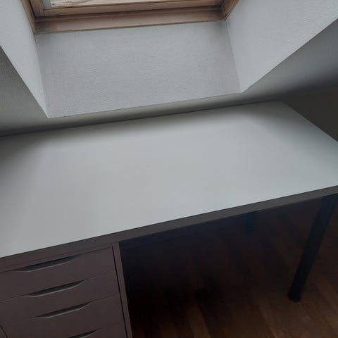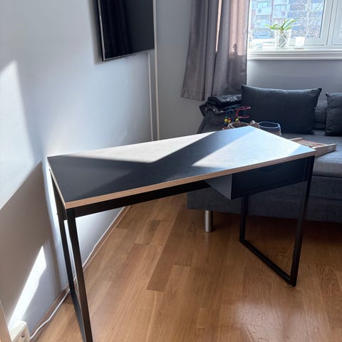 Selger en bordplate fra IKEA Lagkapten, med to bordbein inkludert. Bordplaten kan kombineres med flere understell fra Lagkapten-serien fra IKEA.