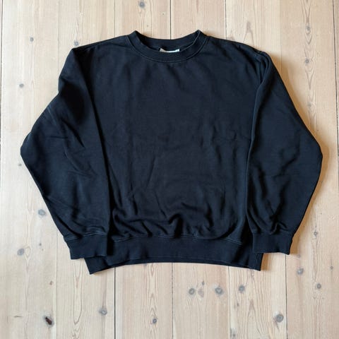 Weekday genser for herre i størrelse M. Genseren er svart og laget av bomull. Den har lange ermer og rund hals. Passer til hverdagsbruk og kan kombineres med ulike typer bukser og jakker.