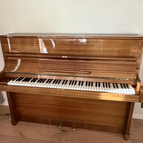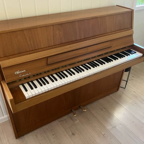 Vi gir bort et nydelig Grøndahl piano: Nordiska Piano Futura, i lyst lakkert treverk.