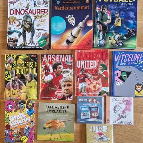 Pakje med fem svenske fotballbøker i fint skikk (noen pyssel er lavet i pysselboka).