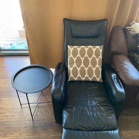 Stolene er kjøpt samtidig og begge framstår som nye.