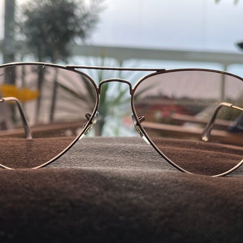 Selger et par klassiske Ray-Ban Aviator solbriller.
