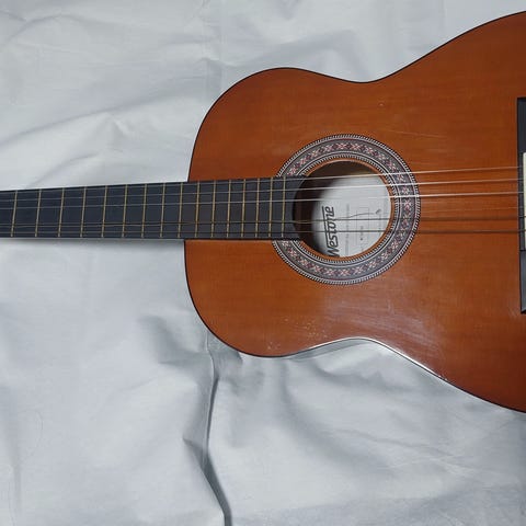 Den er som ny, passe til kresene nybegynner eller de som ønsker seg en pene gitar/møbel. Nye prisen er ca 1680.- selges kr 1000.- + porto.