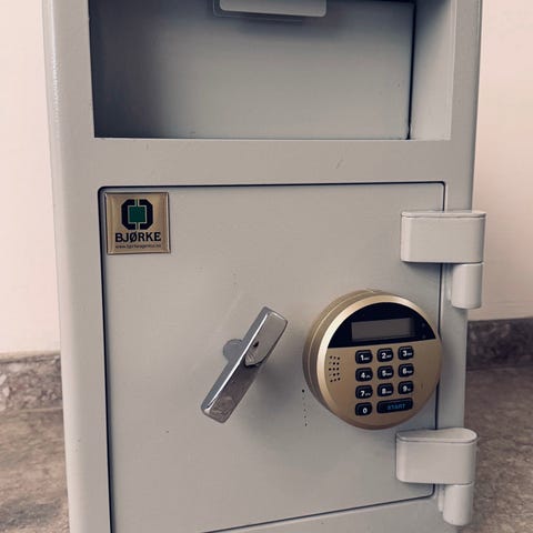 Fin deponeringsafe, dobbel med liten safe og selve deponeringsafe i bunn. I en enhet. 147x48x50. 800 kg