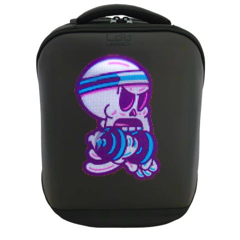 Barneryggsekk fra Norske Ledback med rund, lyssterk og fargerik LED skjerm, som gir Buddy personlighet.