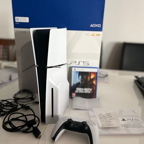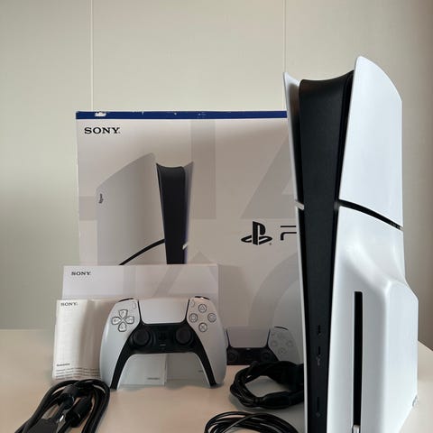 Selger min PS5 Slim disk edition med 1TB lagringsplass.