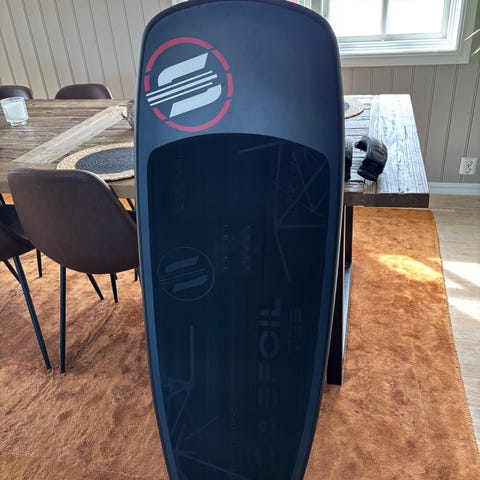 Cabrinha foilbrett med foil i blå farge. Brettet har strukturert antiskli-dekke på oversiden og monteringspunkter for fotstropper. Foilen består av mast, fuselage og vinger med Cabrinha-logo. Ingen volum i brettet, så må brukes med en kite. Passer for brukere som ønsker et komplett oppsett med brett og foil fra samme produsent. Kjekt brett for en som skal lære seg å stå på en hydrofoil. Brettet har også finner, så kan selvfølgelig brukes uten foilen også. Følger med 3 fotstropper og to master 60/90cm.