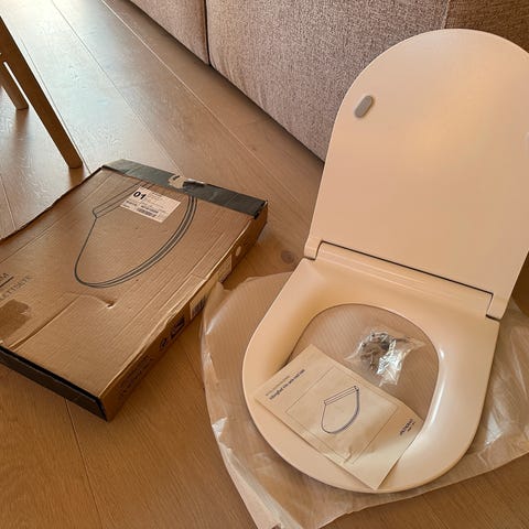 Det er kun tatt ut av esken og målt men det passet ikke med målene på toalettets.