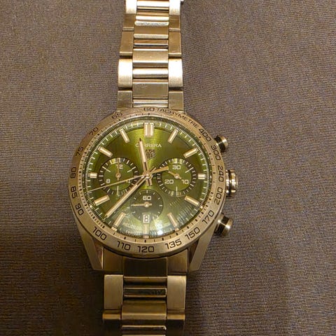 Særdeles pent ur fra Carl F. BUCHERER, Manero flyback.Uret er kun brukt forsiktig i et bryllup. Kjøpt hos urmaker Thorbjørnsen i Stavanger 02.02. 2021, kvittering medfølger,har siden ligget i safe.
