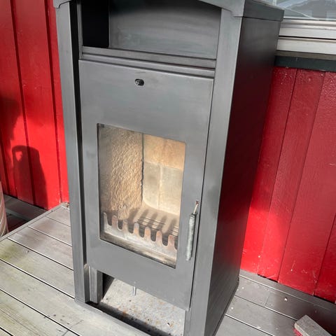 Vedovn i støpejern i svart utførelse. Ovnen har glassdør med sprosser i front, askeskuff nederst og røykrørutgang på toppen. Innvendig er det brennkammer med ildfaste plater. Brennplatene er i dårlig stand og bør byttes.