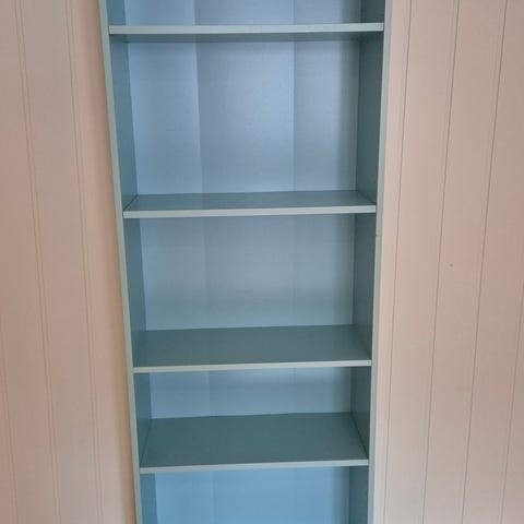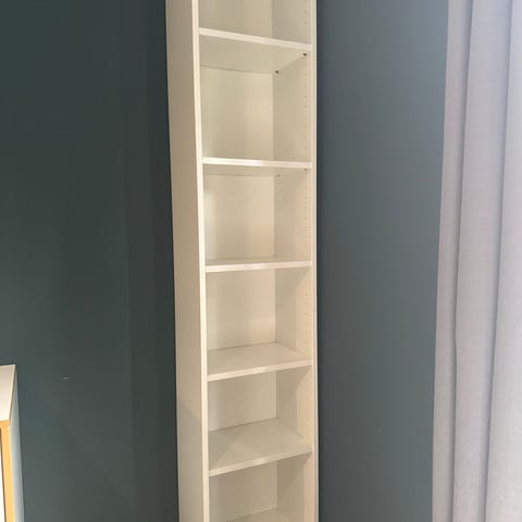Jeg kjøpte denne bokhyllen da jeg bodde i studentleilighet. Nå har den stått en stund hos moren min, og jeg har ingen planer om å ta den i bruk i nærmeste fremtid. Derfor tenkte jeg at den kan likesågodt gå til noen som trenger den!