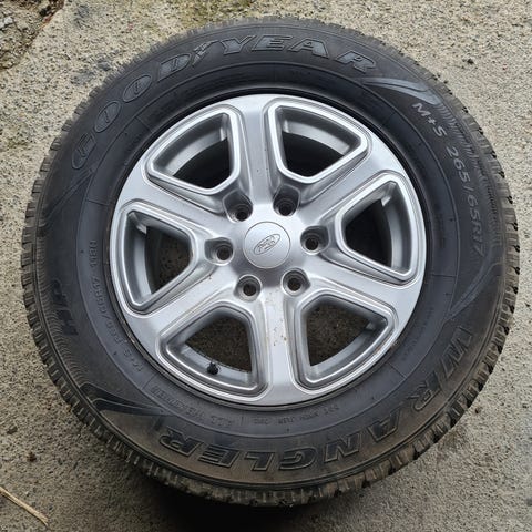 Bra slitte dekk. Stått på en eldre Toyota Hilux.