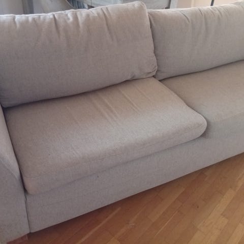 Kan brukes i stue da den er god å sitte i og flott stoff. Kan brukes som to enkeltsenger. Veldig praktisk.