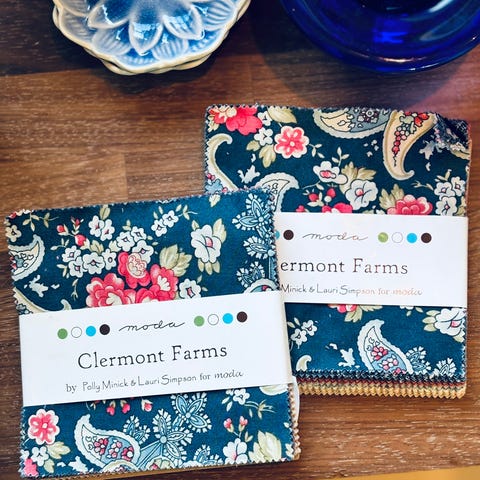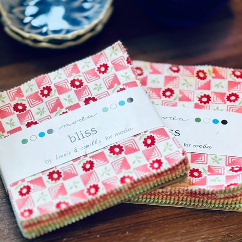 Selger en sjelden samling av 9 stk. originale Moda Charm Packs (5" x 5"). Her er det flere "Out of Print" (OOP) godbiter som er svært vanskelige å få tak i internasjonalt, inkludert den ikoniske Bliss-serien.