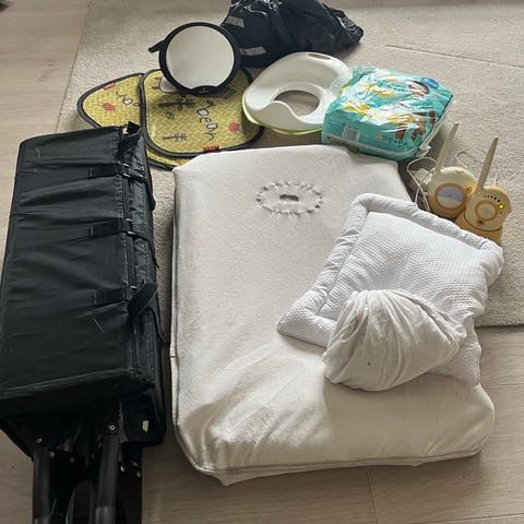 Pent brukt og kun brukt med madrassbeskyttelse inni og bunndeksel når ute av huset. Nyvasket.