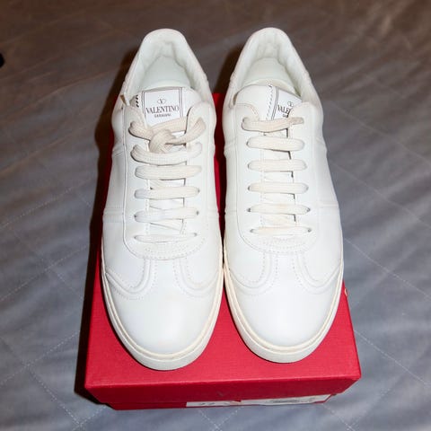Valentino sneakers i størrelse 40. Modellen er lave joggesko i hvit farge med bred svart stropp over vristen med Valentino-logo. Overdel og såle er i syntetisk materiale med polstret hælparti for ekstra komfort. Passer til hverdagsbruk og fritid.