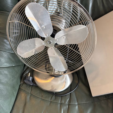 Bordvifte i svart plast med metallgitter. Viften har tre hastighetsinnstillinger (0, 1, 2) som styres med knapper på foten. Den drives med strøm via ledning og støpsel. Egnet for bruk på bord eller benk i for eksempel stue, soverom eller kontor for enkel luft sirkulasjon.