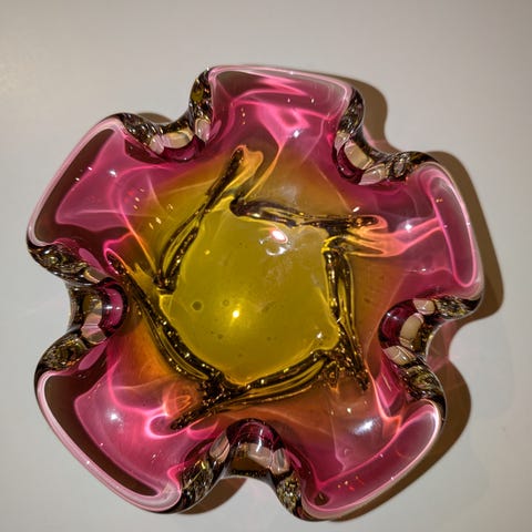 Vintage kunstglass i kuleform.