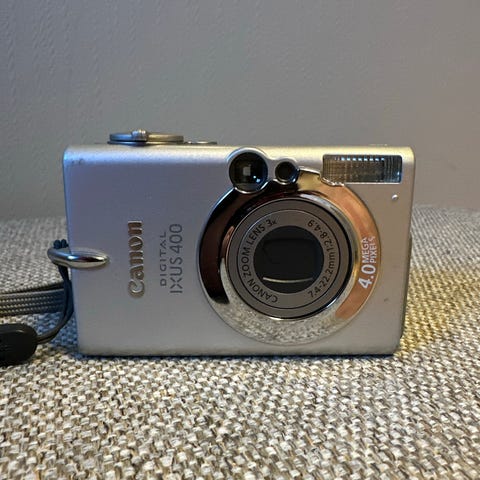 Canon Digital IXUS 950 IS kompaktkamera i sølvfarge. Kompaktkameraet har innebygd zoomobjektiv og skjerm på baksiden for visning av bilder og menyer. Kameraet leveres med en liten bæreveske med flere lommer for oppbevaring av kamera og tilbehør. Egner seg til enkel fotografering i hverdagen og på reise. Spesifikke tekniske data som oppløsning, lagringsmedium og tilkoblinger er ikke nærmere oppgitt i annonsen.