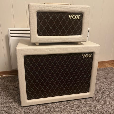 Selger en meget god VOX AC15 rørforsterker. Spiller høyt og fint, men trenger ikke veldig høyt volum for å få den deilige rør-vrengen. Forsterkeren ser bra ut og har ingen merker eller sår. Jeg har hatt den i ca 3 år og har stort sett stått i øvingslokalet, men har fått vært med på noen få spillejobber. Vox VFS2A Dual Footswitch følger med. Denne kontrollerer tremolo og reverb. Kan prøves i Oslo.