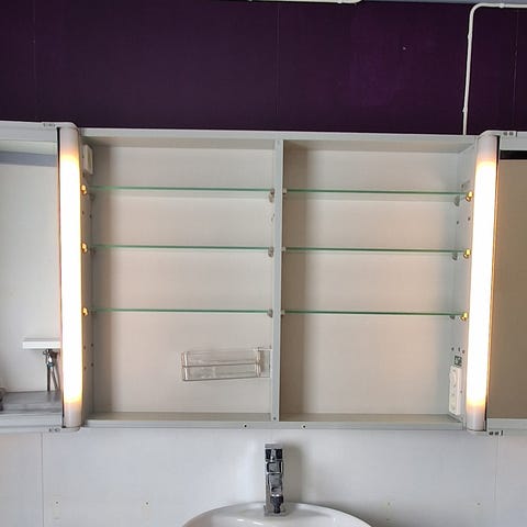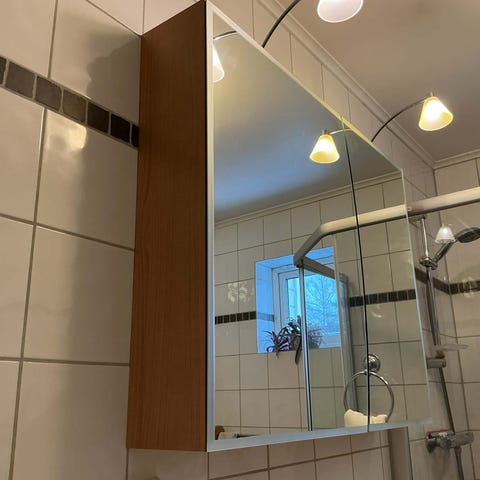 Dansani speilskap med tre speildører selges kr 300. Lampen over speilet er forholdsvis ny, men kan følge skapet.
