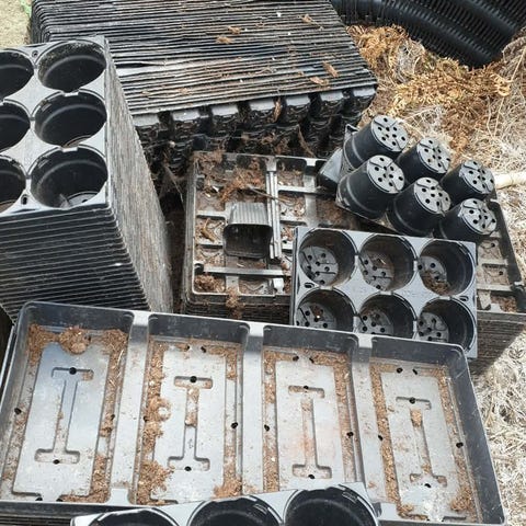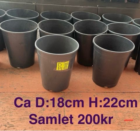 Pent brukt. Er tre tomat Potter med stativ og to agurk Potter store med stativ