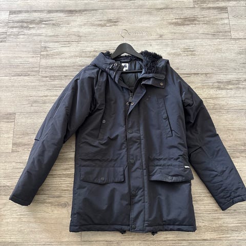 Carhartt A.P.C. dunvest for dame i størrelse M. Vesten er brun og fylt med dun. Den har høy krage, glidelås kombinert med trykknapper i front og stikklommer med klaff og trykknapp på sidene.