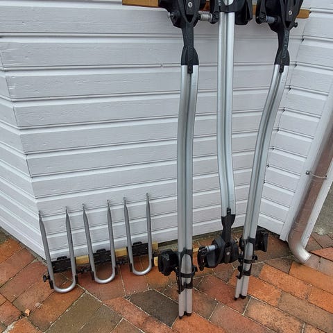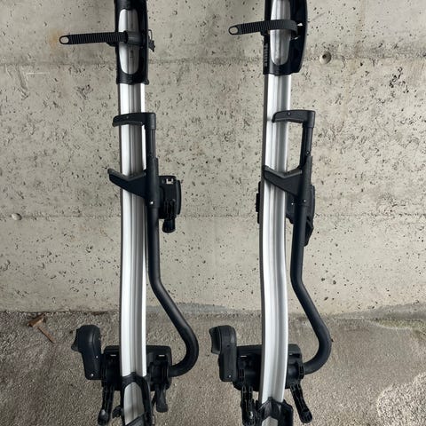 Takmonterte sykkelstativ i svart, selges som et par. Stativene festes til takstativ/takbøyle.Egnet for transport av sykler på bilens tak. Passer for biler med kompatible takbøyler og festesystem. Anbefales å kontrollere mål og festetype mot egne takbøyler før bruk.