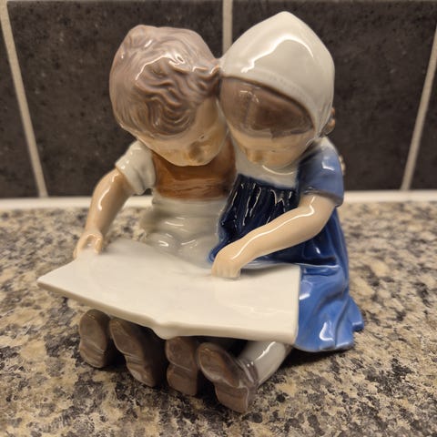 Vintage samleobjekt - porselensfigurer, gutt på krakk som leser