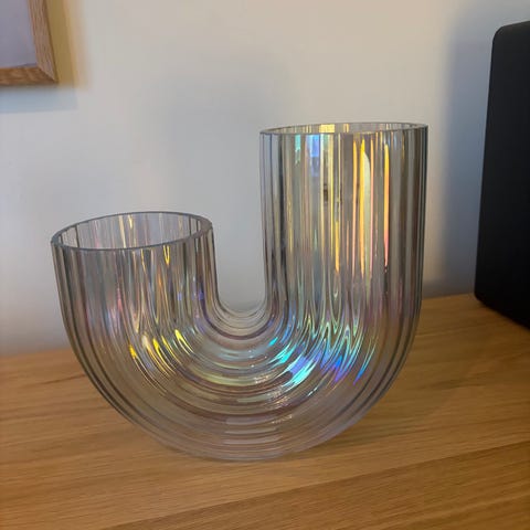Hadde en gang en drøm om en regnbuebaby, og kjøpte vase til rommet dens💕 selges videre til noen som er heldigere enn meg, eller bare elsker regnbuefarger like mye som meg:) tror det var 300 fra ikea en gang i tiden, selges for 50. kan hentes på storo/ekeberg eller sendes.