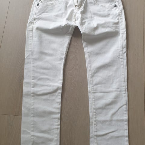 Meget pen bukse fra Adriano Goldschmied. Størrelse 27R. Glidelås foran. Rette ben. Foret. Meget pen. Noe elastisk. Lengde fra ca 100cm. Omkrets liv ca 78 cm. Billigste porto. Se også mine øvrige annonser (trykk min profil for å se annonsene).